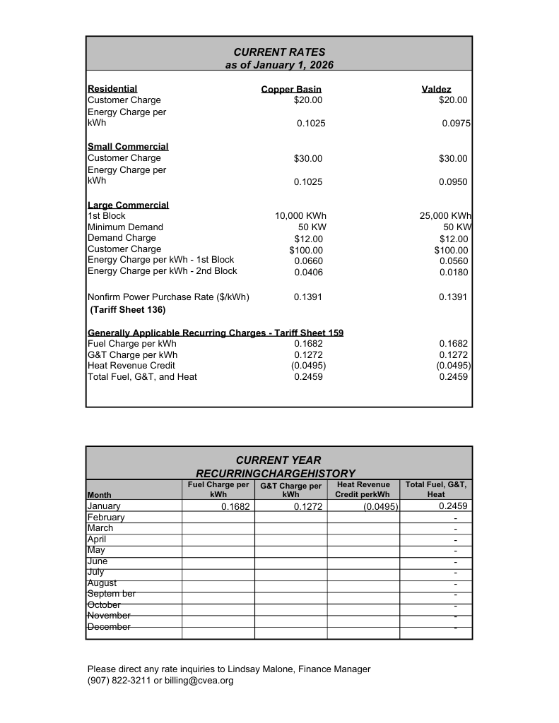 Please direct any rate inquiries to Lindsay Malone, Finance Manager at (907) 822-3211 or billing@cvea.org