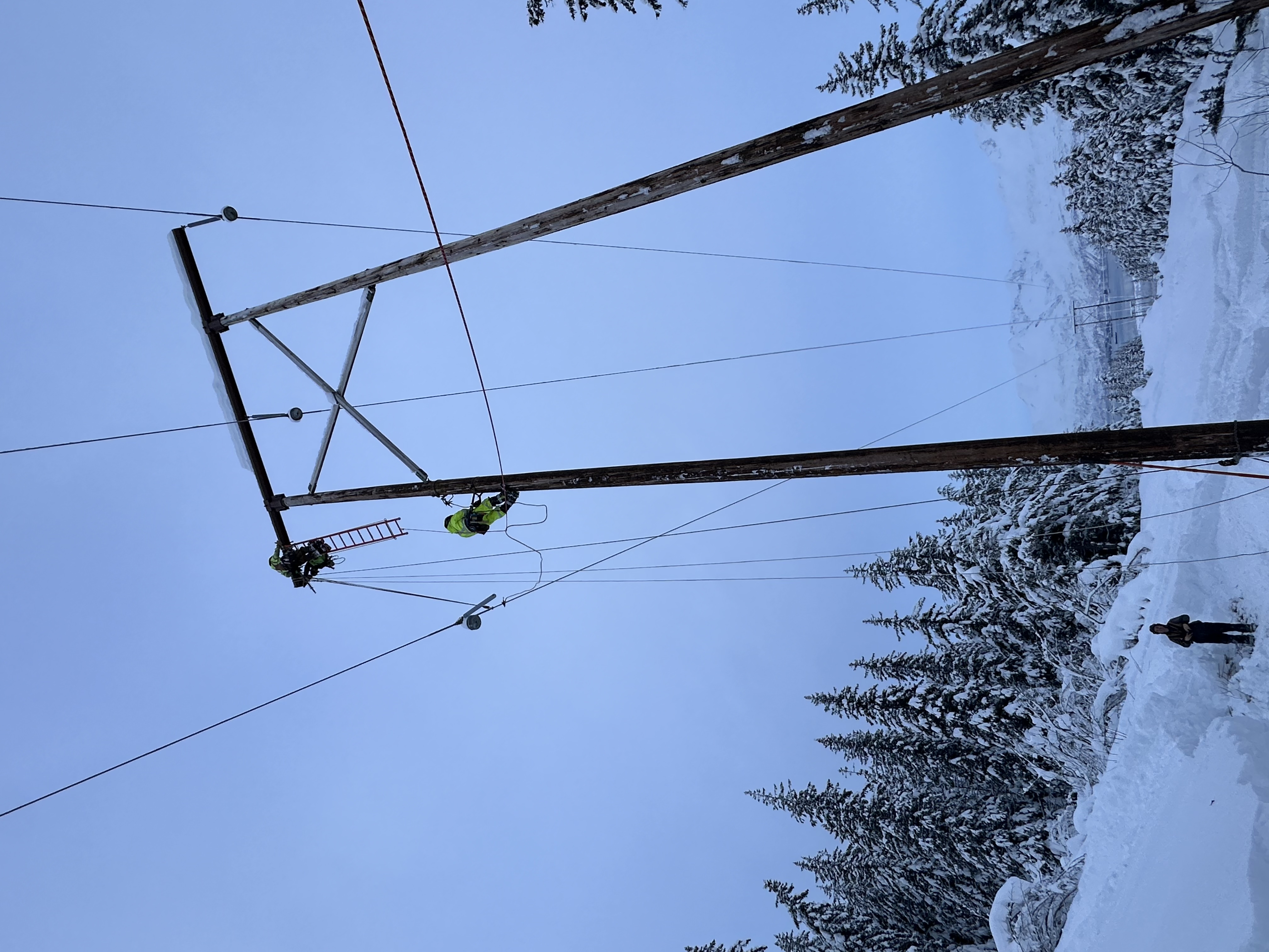 On Wednesday, at roughly 3:30 a.m., a system-wide outage occurred due to a fault on the transmission line. Power was restored to the majority of members in both districts within an hour. The transmission line was patrolled with a helicopter at daylight. A tree was found on the transmission line across the bay from Valdez in an area prone to avalanches. After consulting with an avalanche expert to ensure the safety of personnel, crews were allowed to work under specific conditions. The line crew accessed the area on tracked rigs and repaired the line on Saturday, allowing the system to be reconnected.