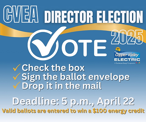 Copper Valley Electric Association, Inc., invites you to the 2025 Annual Meeting of Members. The CVEA Annual Meeting is your chance, as a member-owner, to find out what is going on at your electric cooperative.