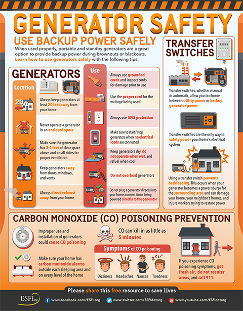 Electrical Safety Foundation International recommends following these portable electric generator safety precautions to avoid dangerous situations.