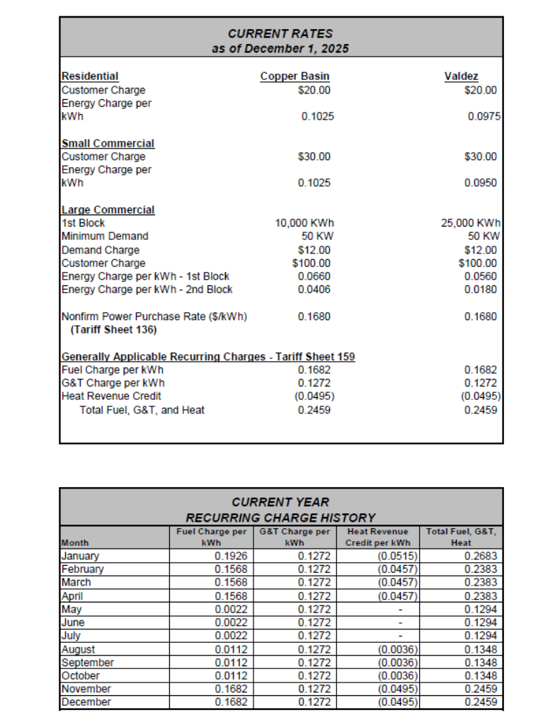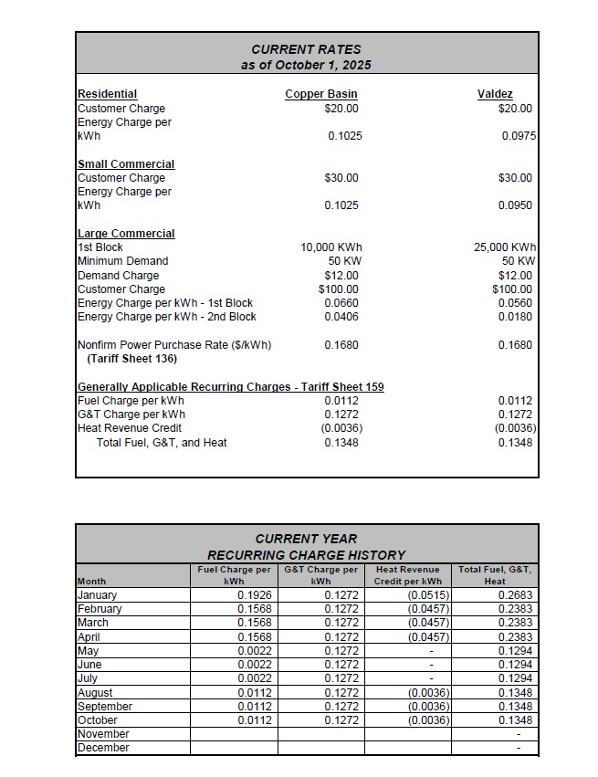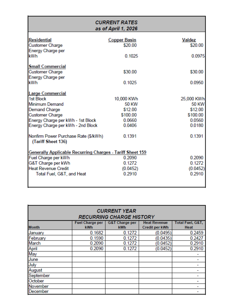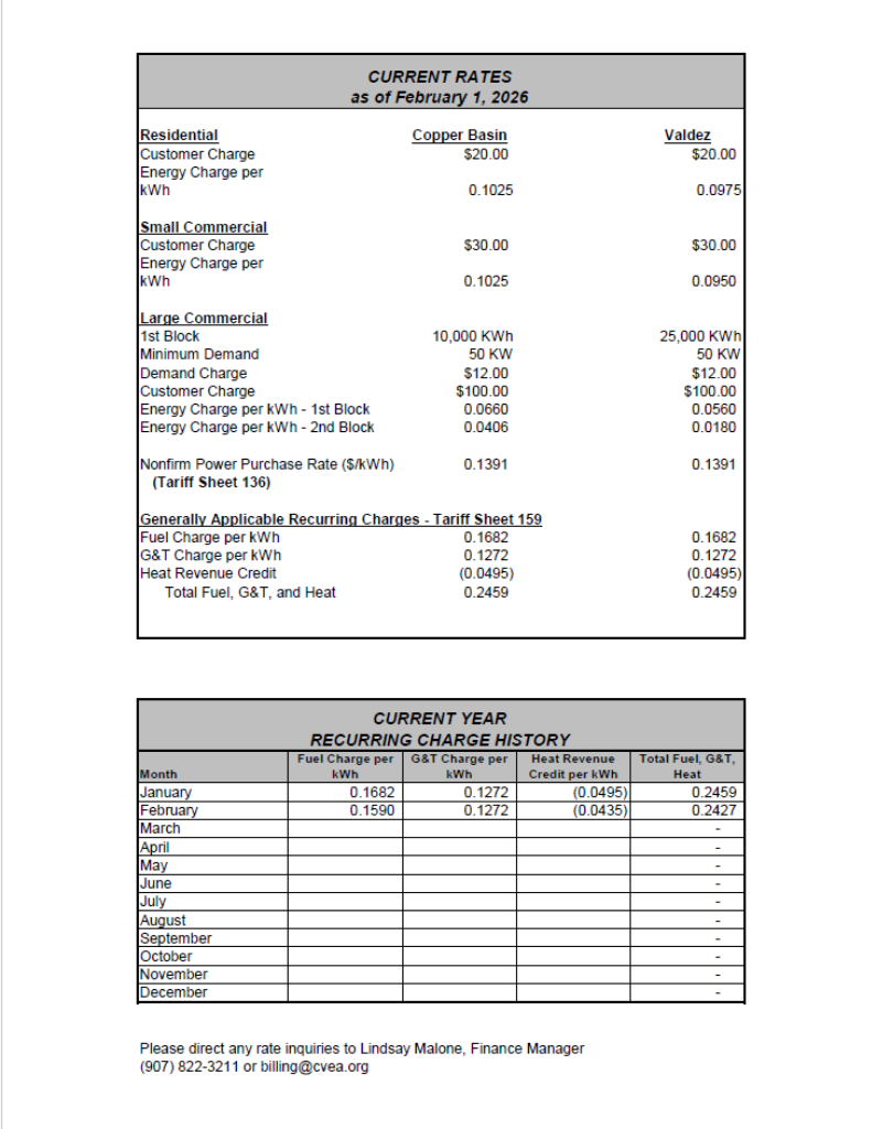 Please direct any rate inquiries to Lindsay Malone, Finance Manager at (907) 822-3211 or billing@cvea.org