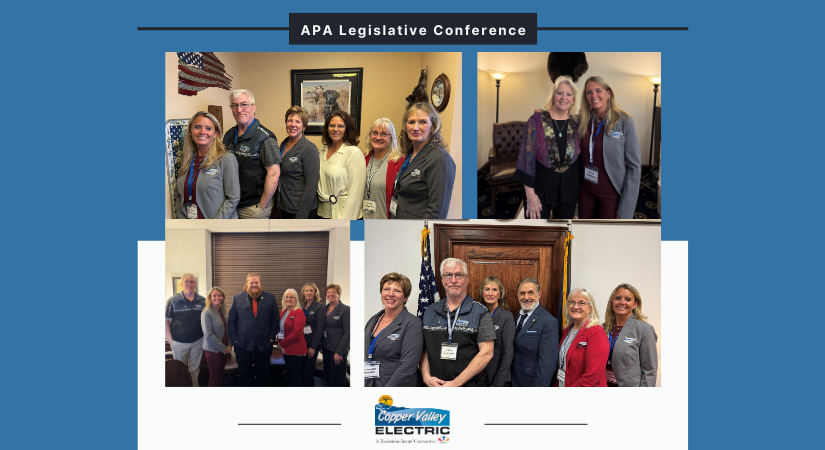 Last week, CEO Matthews and Director Hess attended the Alaska Power Association State Legislative Conference in Juneau, Alaska. While there, they engaged with legislators, heard from our federal delegation, listened to panel discussions on statewide energy priorities, and had one-on-one meetings with Representative George Rauscher, Representative Becky Schwanke, Senator Mike Cronk, and Senator Mike Shower.