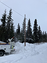 Due to avalanche conditions, Thompson Pass closed early Sunday morning, preventing the Valdez line crew from assisting. CVEA secured extra line crew members from Electric Power Constructors in the Mat-Su Valley. They arrived on scene by roughly 10:30 a.m. Sunday. Once the highway reopened late Sunday evening, the Valdez line crew joined the restoration effort.
